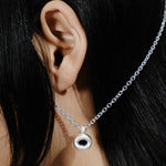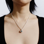 Our signature Bonded setting swells around an oval sapphire, the technique itself forming a material bond that symbolises lasting connection. Crafted in Argentium silver with a sterling silver chain.