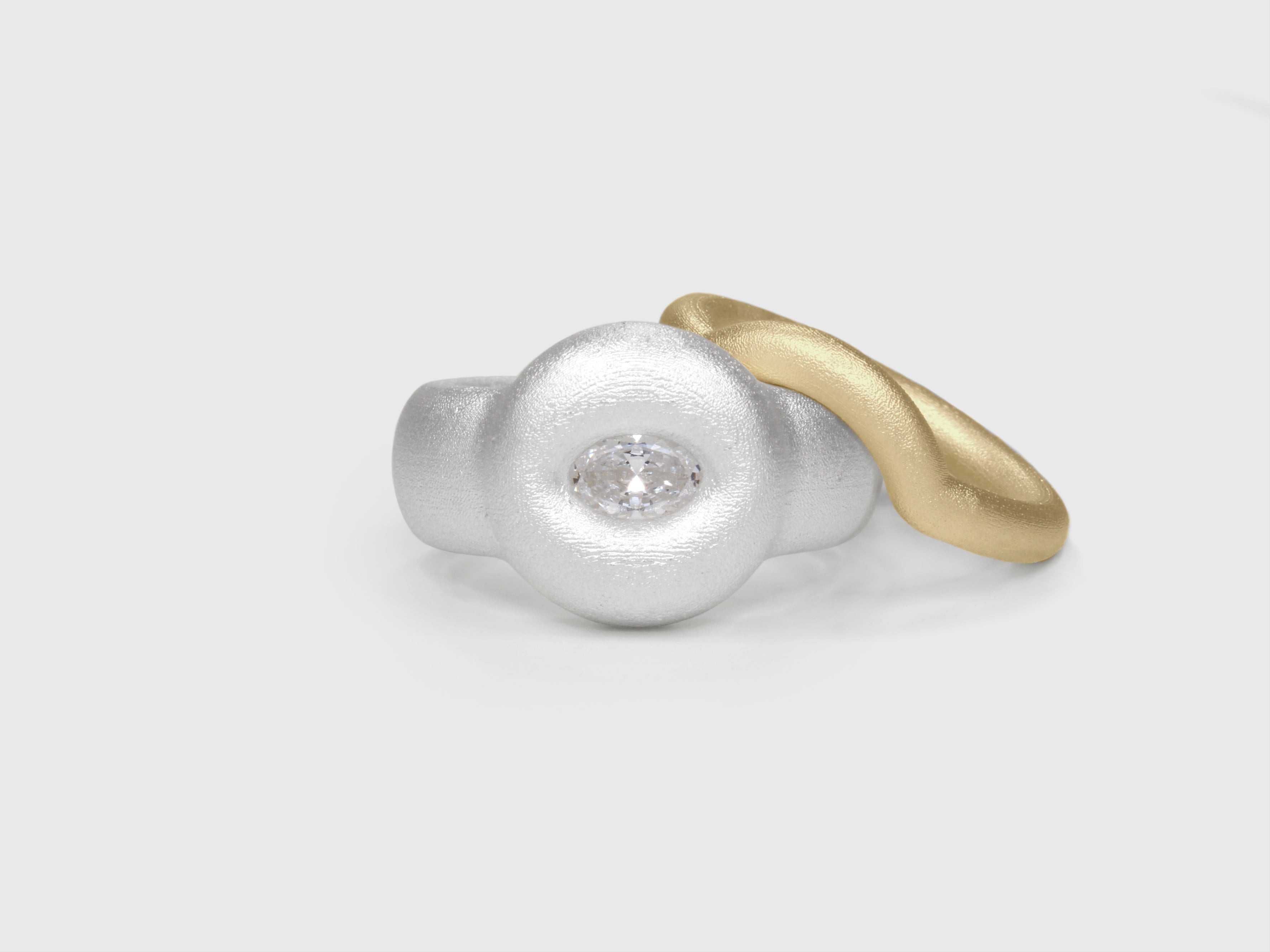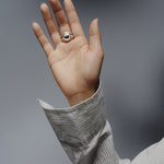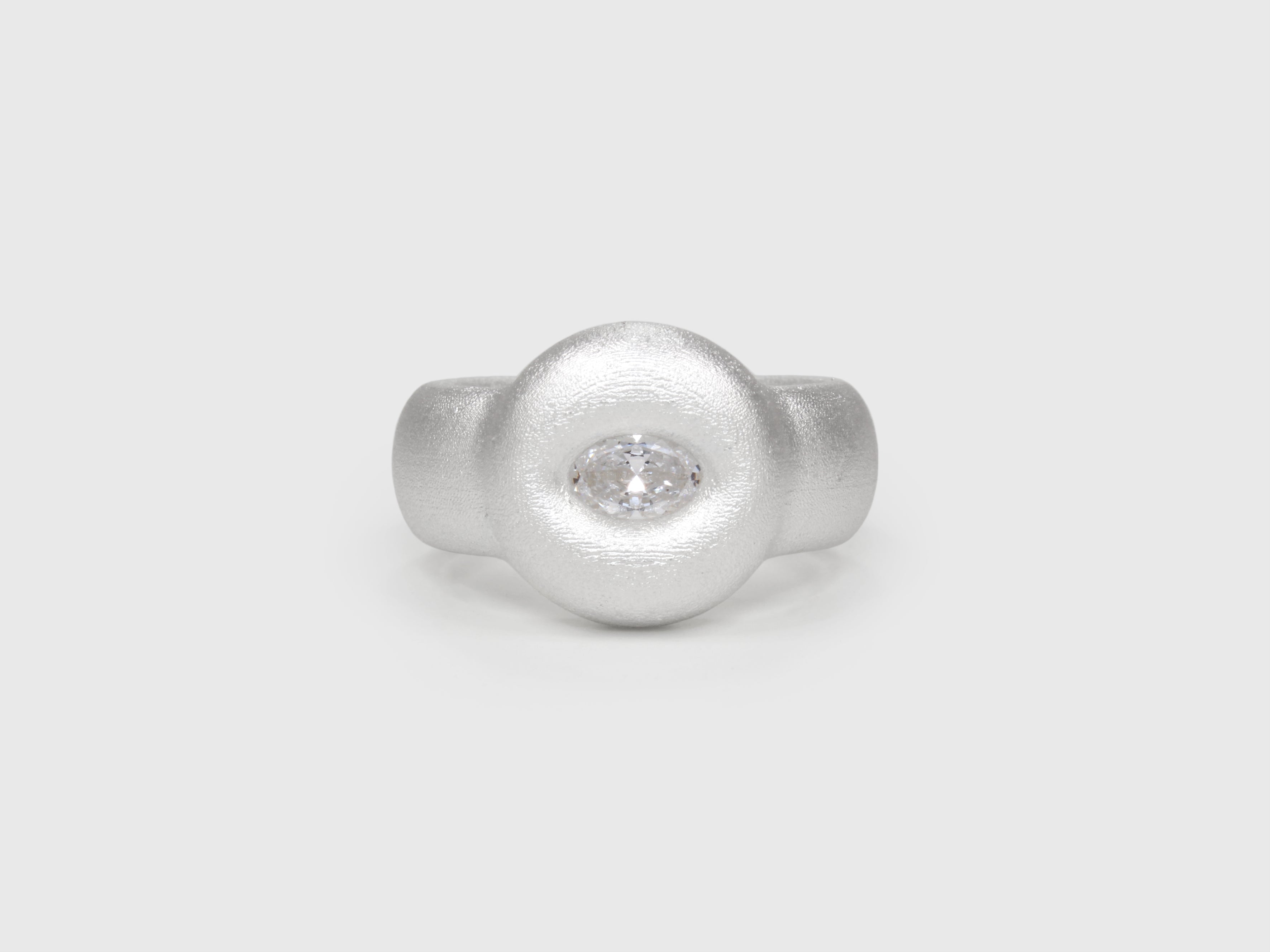 Precious metal puffs and swells around an oval sapphire in our signature Bonded setting, the technique itself forming a material bond that symbolises lasting connection. Crafted in silver with a wide, soft band, the exaggerated form acts as an aide-memoire to the sentiments it carries.