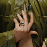The Bonded collection signifies the weight of human bonds across eight storylines. Defined in soft and voluminous geometric forms, crafted in fine metals and precious gems, each piece is designed to evolve to the characteristics and life of the wearer. Over the course of years, as if taking tally of time, pieces mark and patina in a bond with the moments its wearer lives through, and the ways they respond to them.