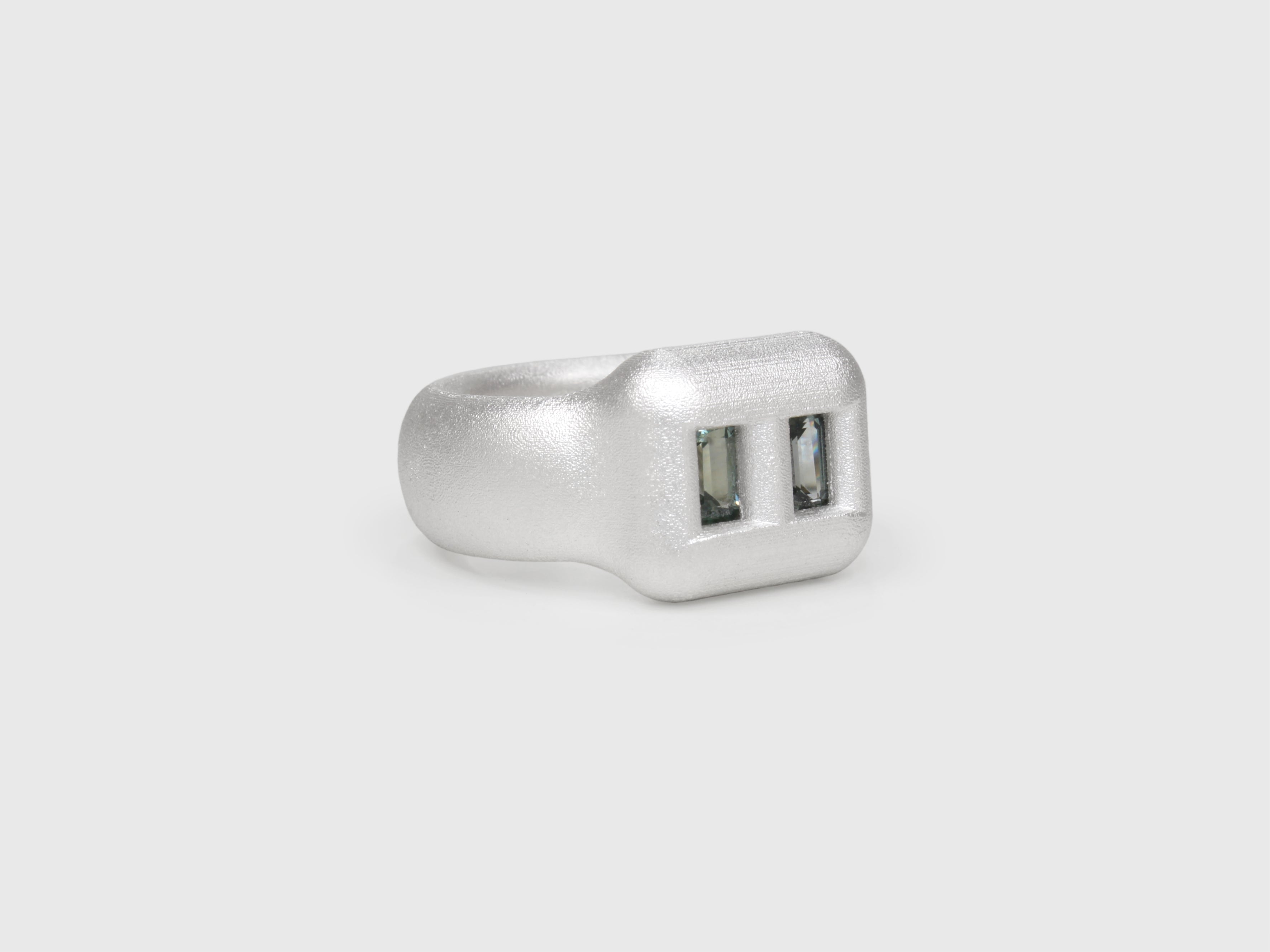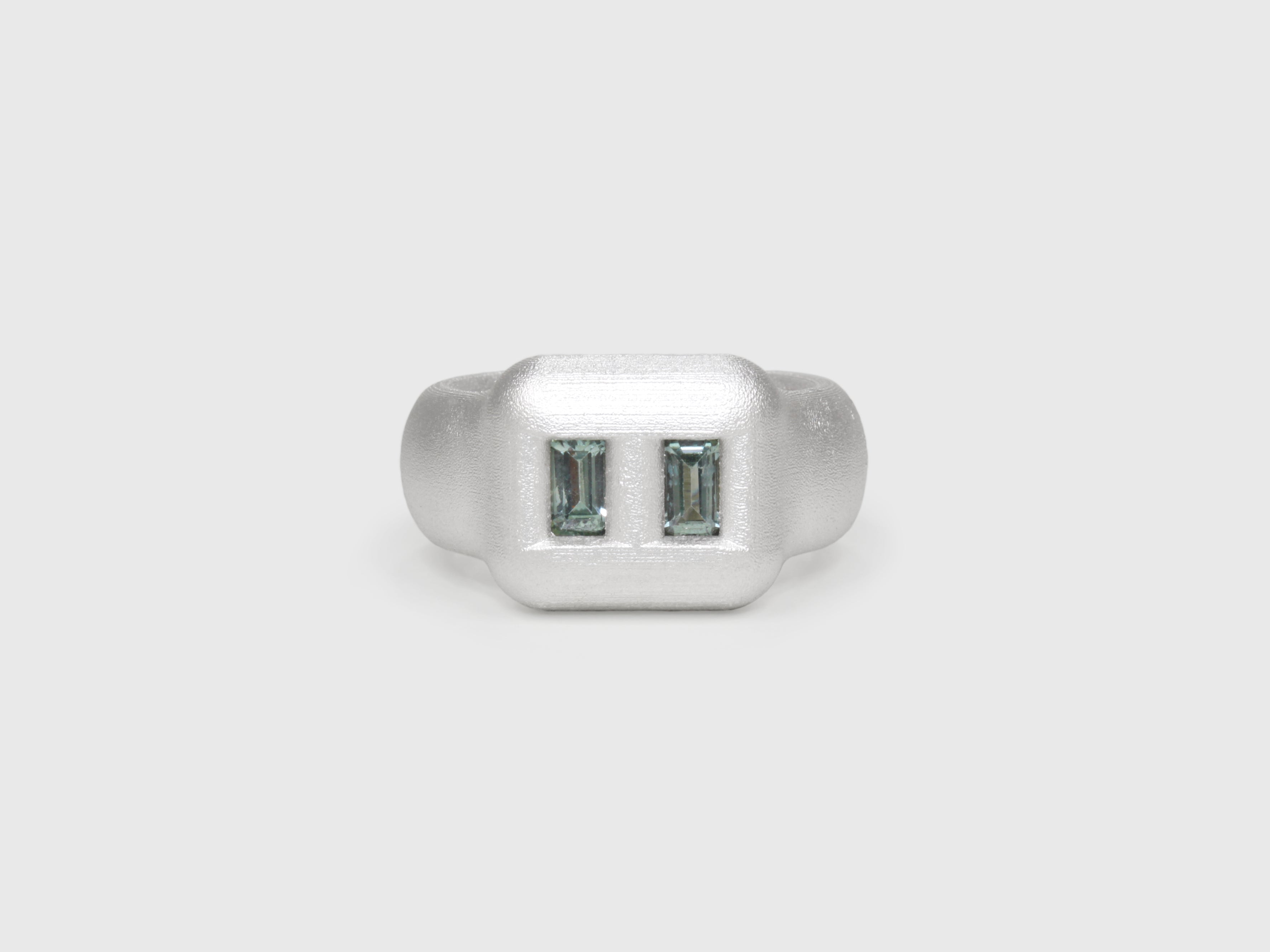 A pair of baguette sapphires are captured in our signature Bonded setting, the technique itself forming a material bond that symbolises lasting connection. A ‘Toi et Moi’ ring in keeping with the exaggerated volume and sentiment of the Bonded collection.