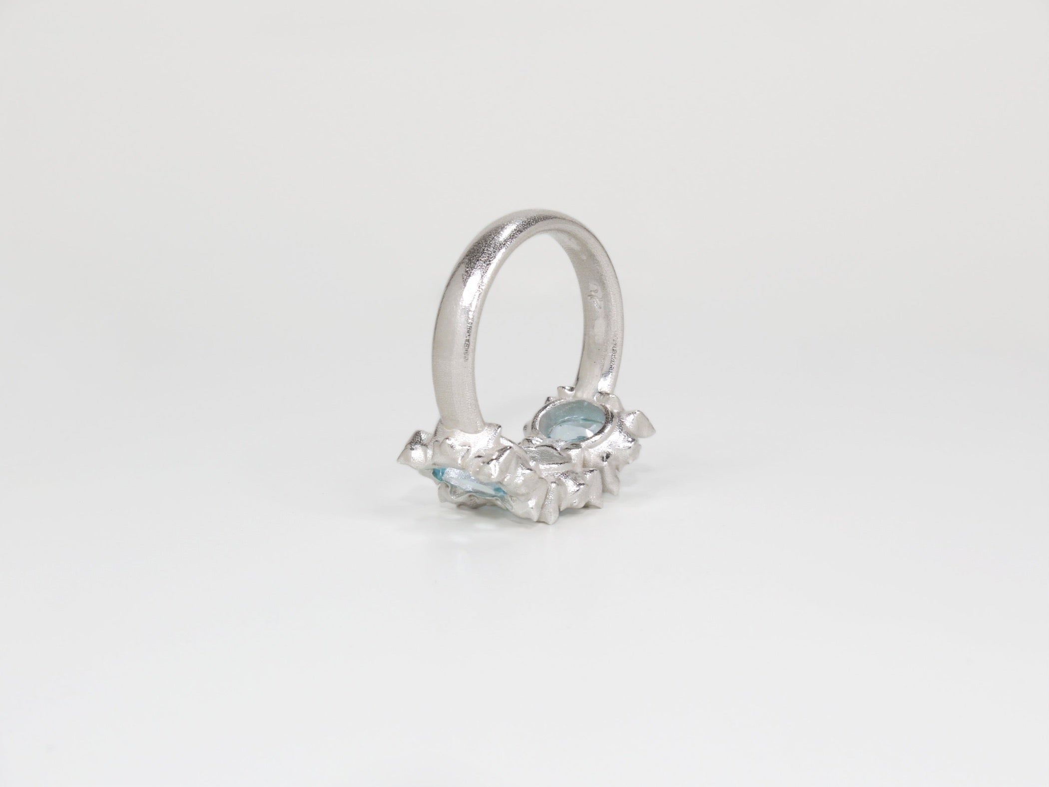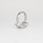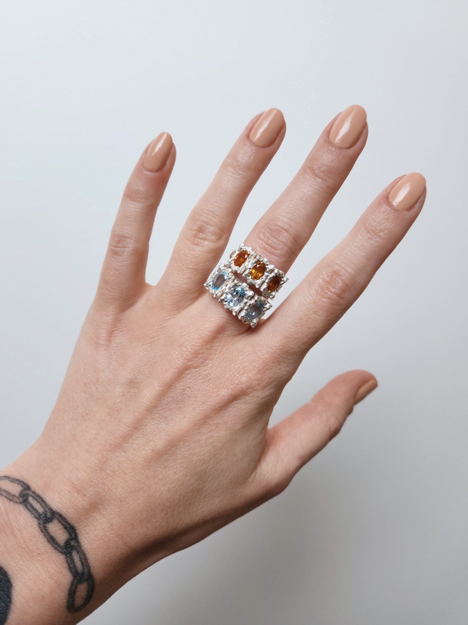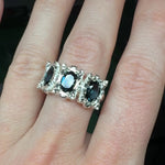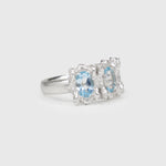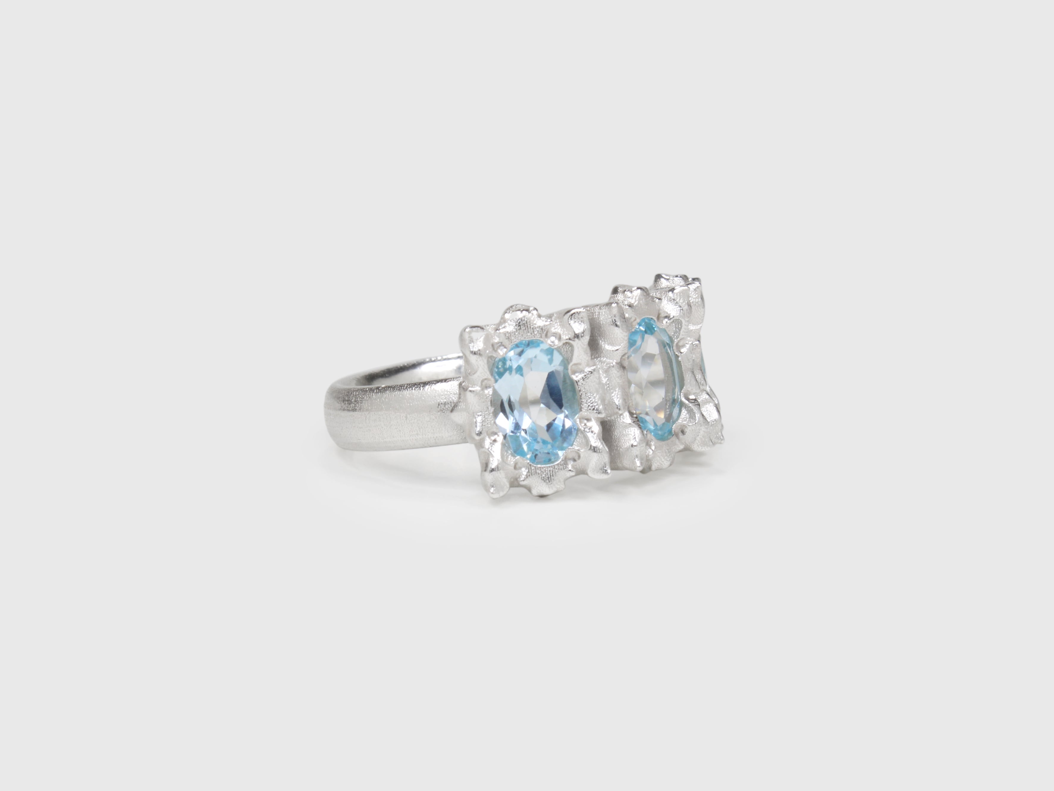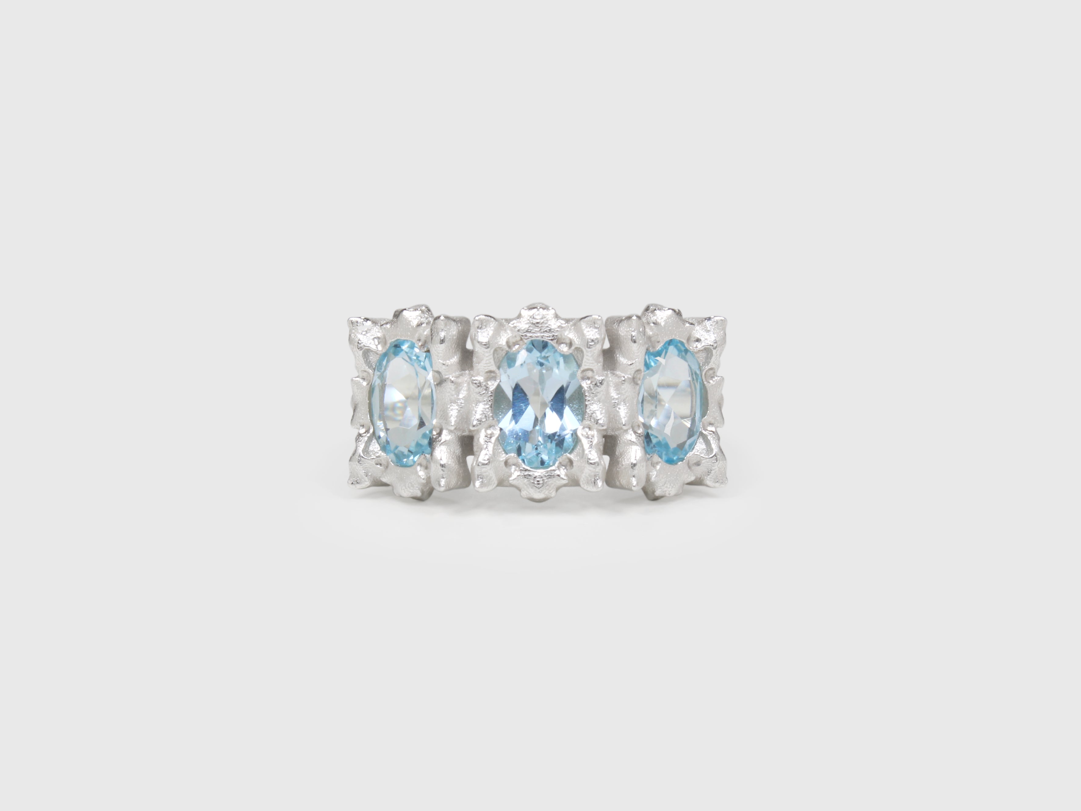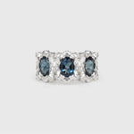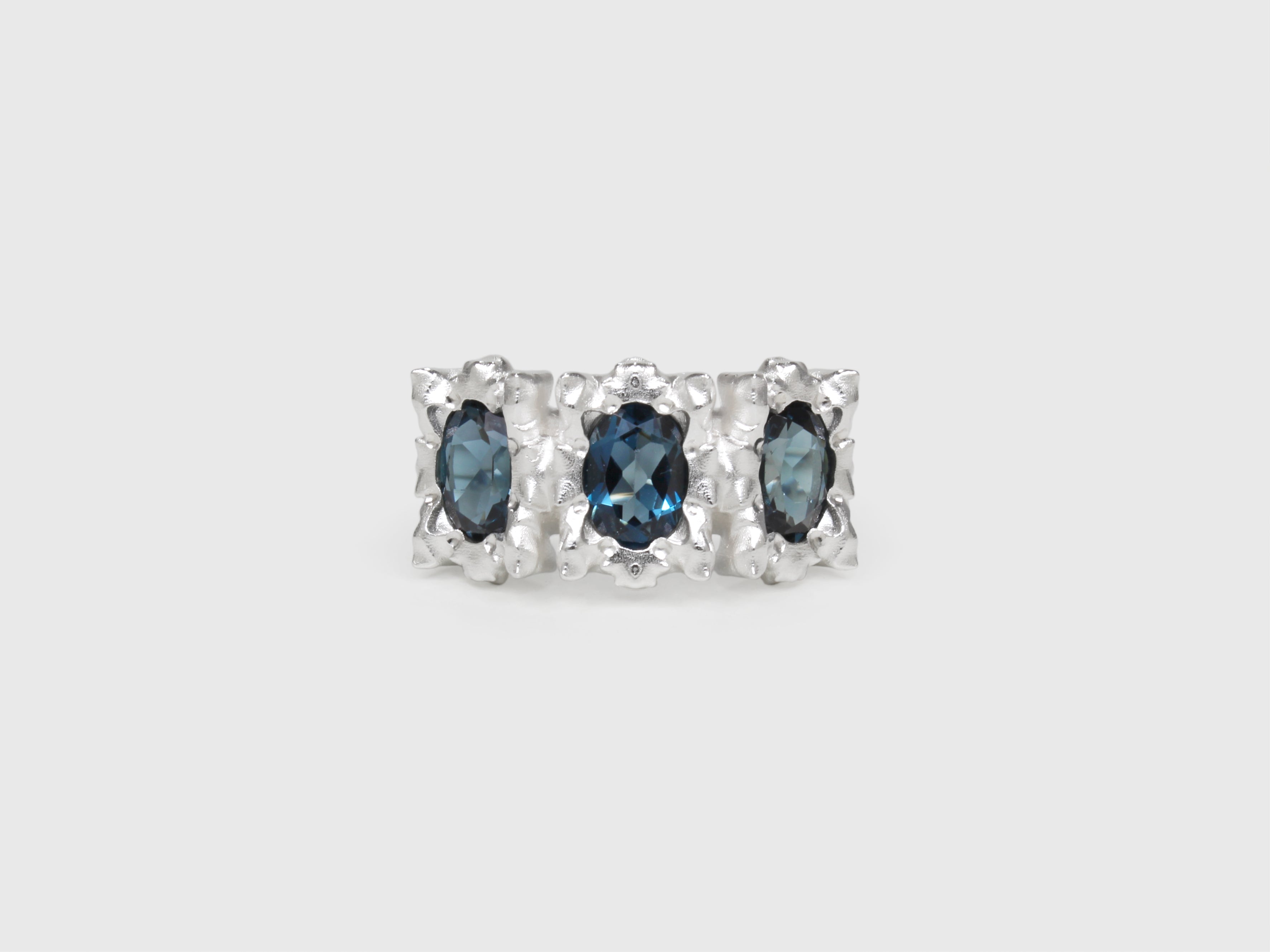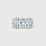 This is the larger version of the KOI-5 ring, featuring three 7x5mm oval stones.