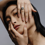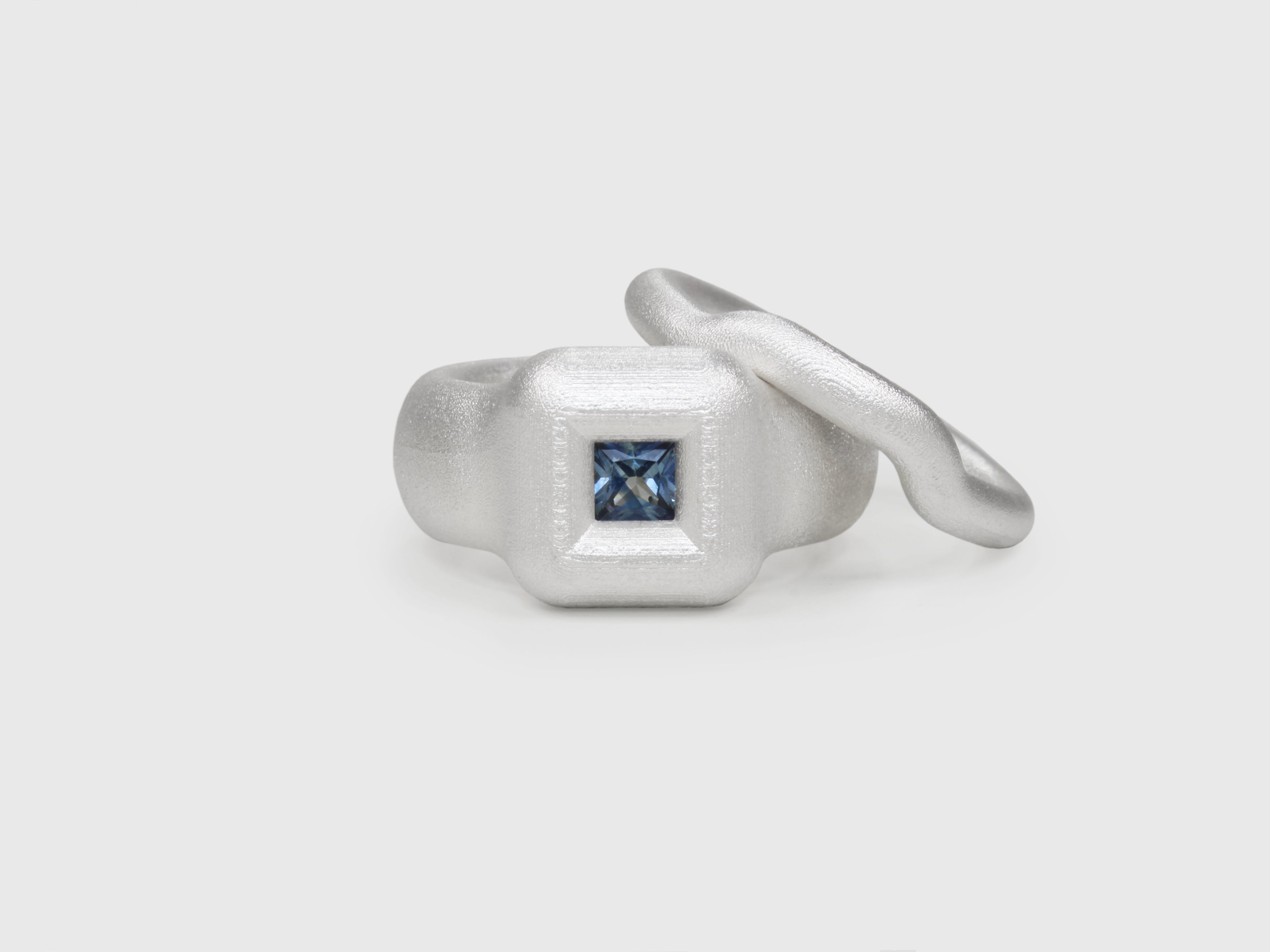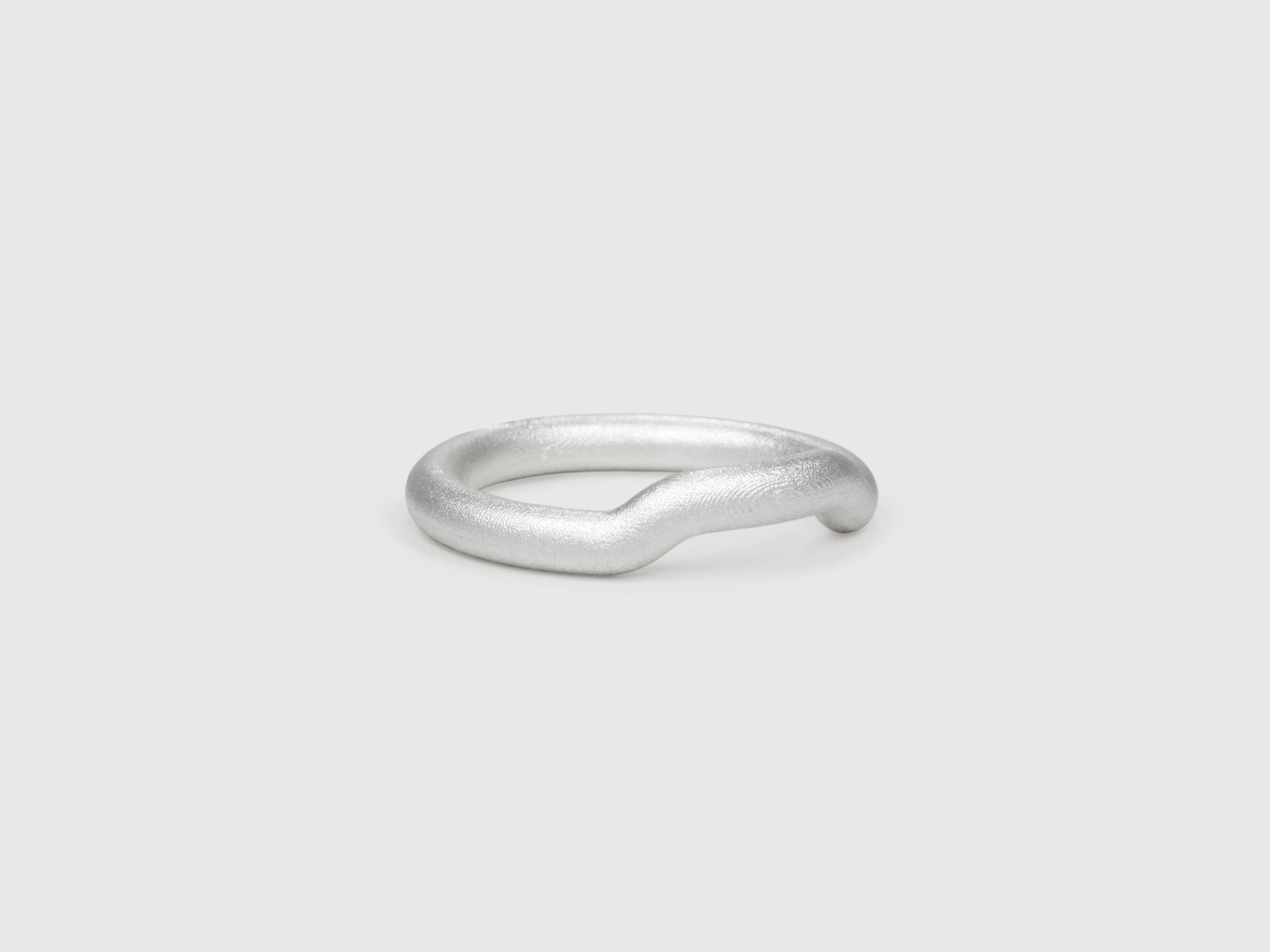 A companion or wedding band to the Metallic ring, this rounded band perfectly charts its contour. Intended as a gesture to sit alongside or worn by another as an echo of its shape and sentiments.