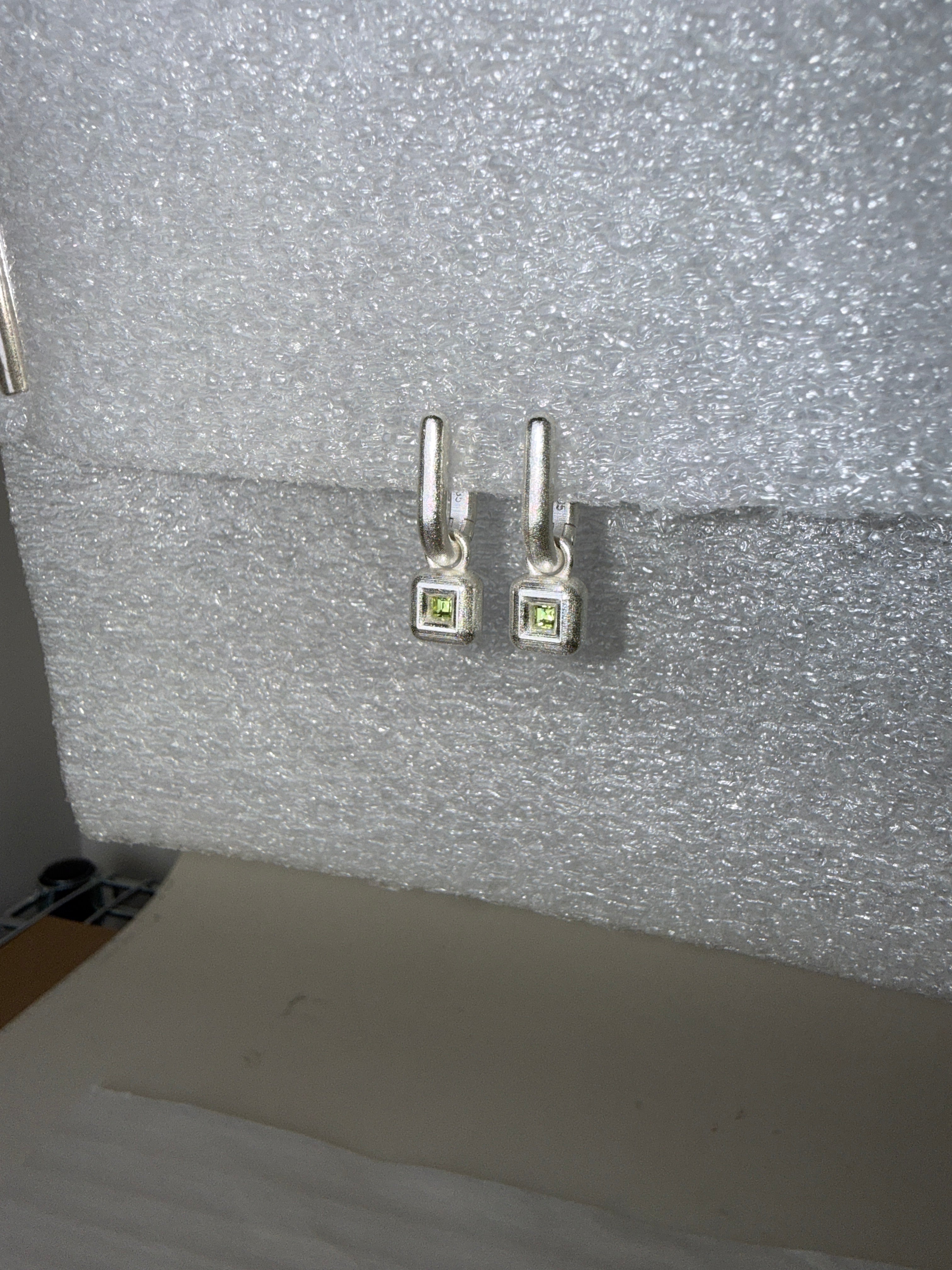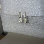 A pair of square gems are captured in our signature Bonded setting and suspended from hinged U shaped earrings that hug the ear. Thoughtful design that speaks of lasting connection. Crafted in Argentium silver.