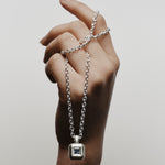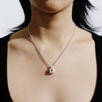 Our signature Bonded setting swells around a princess cut sapphire, the technique itself forming a material bond that symbolises lasting connection. Crafted in Argentium silver with a sterling silver chain.