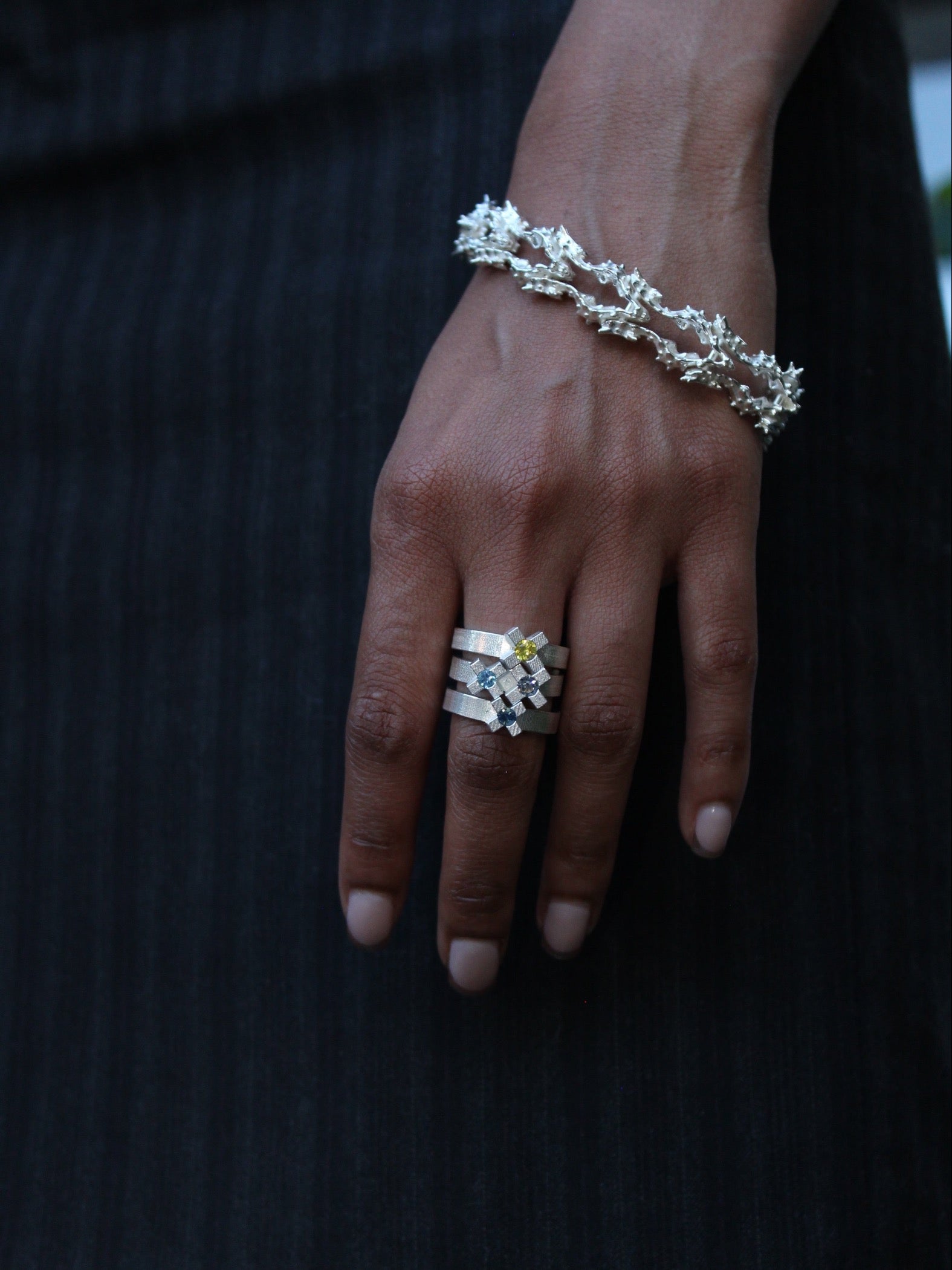 Stack with the Obelisk ring and the Obelisk Small ring.