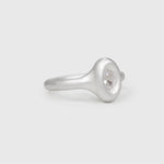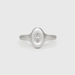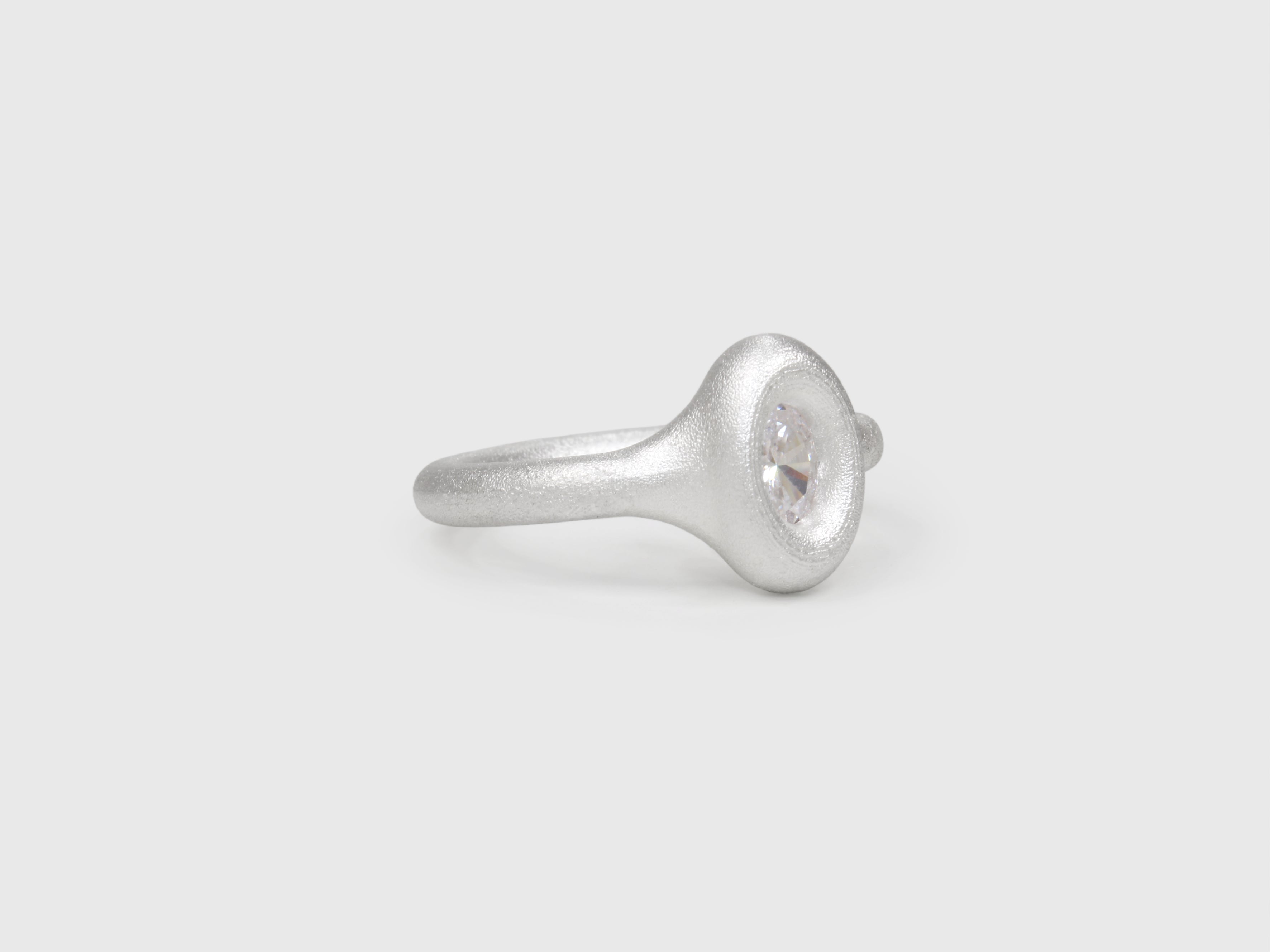An oval sapphire is ensconced by a swell of silver in our signature Bonded setting, the technique itself forming a material bond that symbolises lasting connection. Crafted in silver with a soft, round band, the exaggerated form acts as an aide-memoire to the sentiments it carries.