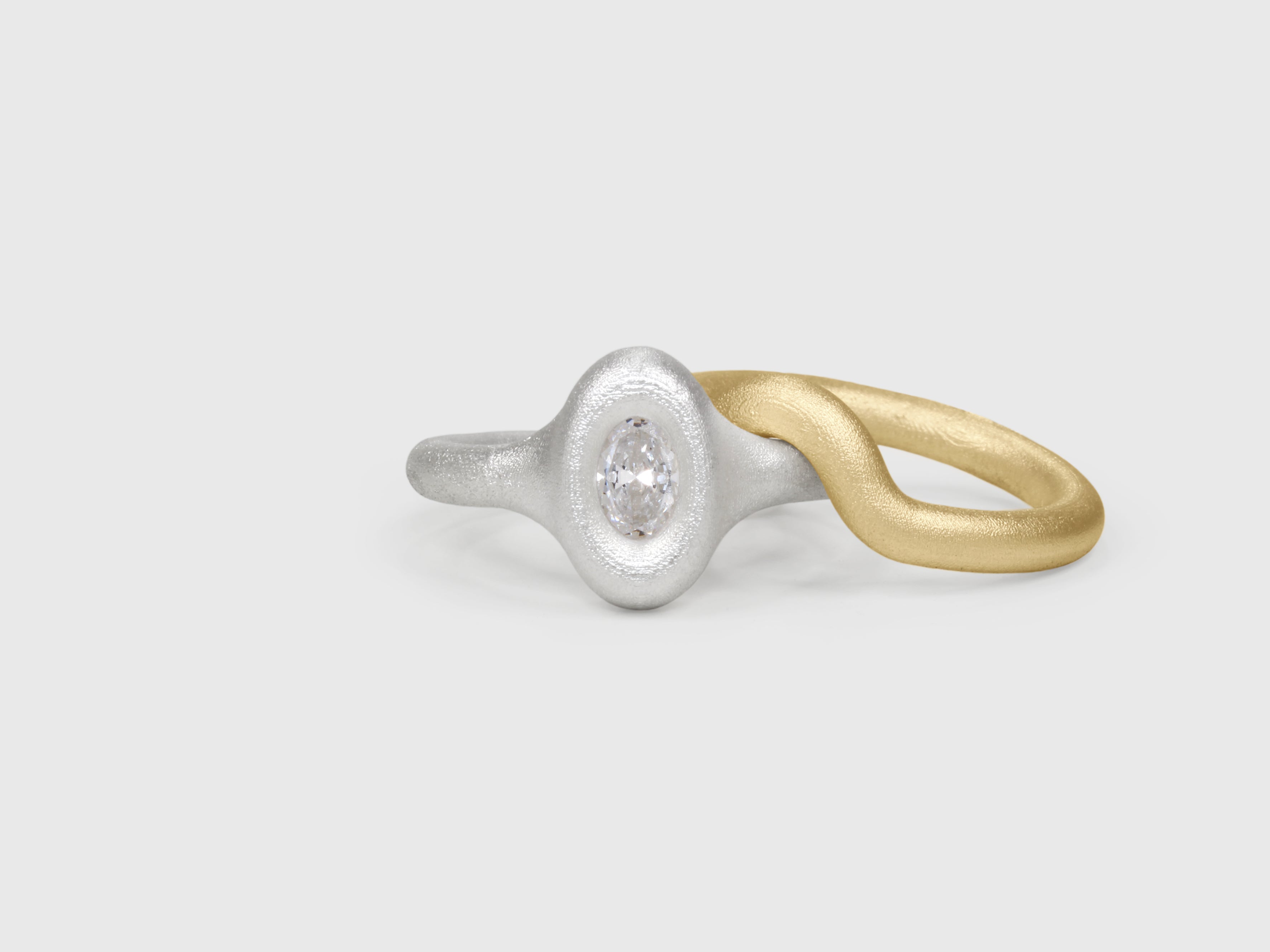 The Bonded collection signifies the weight of human bonds across eight storylines. Defined in soft and voluminous geometric forms, crafted in fine metals and precious gems, each piece is designed to evolve to the characteristics and life of the wearer. Over the course of years, as if taking tally of time, pieces mark and patina in a bond with the moments its wearer lives through, and the ways they respond to them.