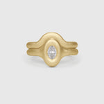 An oval sapphire is ensconced by a swell of gold in our signature Bonded setting, the technique itself forming a material bond that symbolises lasting connection. Crafted in silver with a soft, round band, the exaggerated form acts as an aide-memoire to the sentiments it carries.
