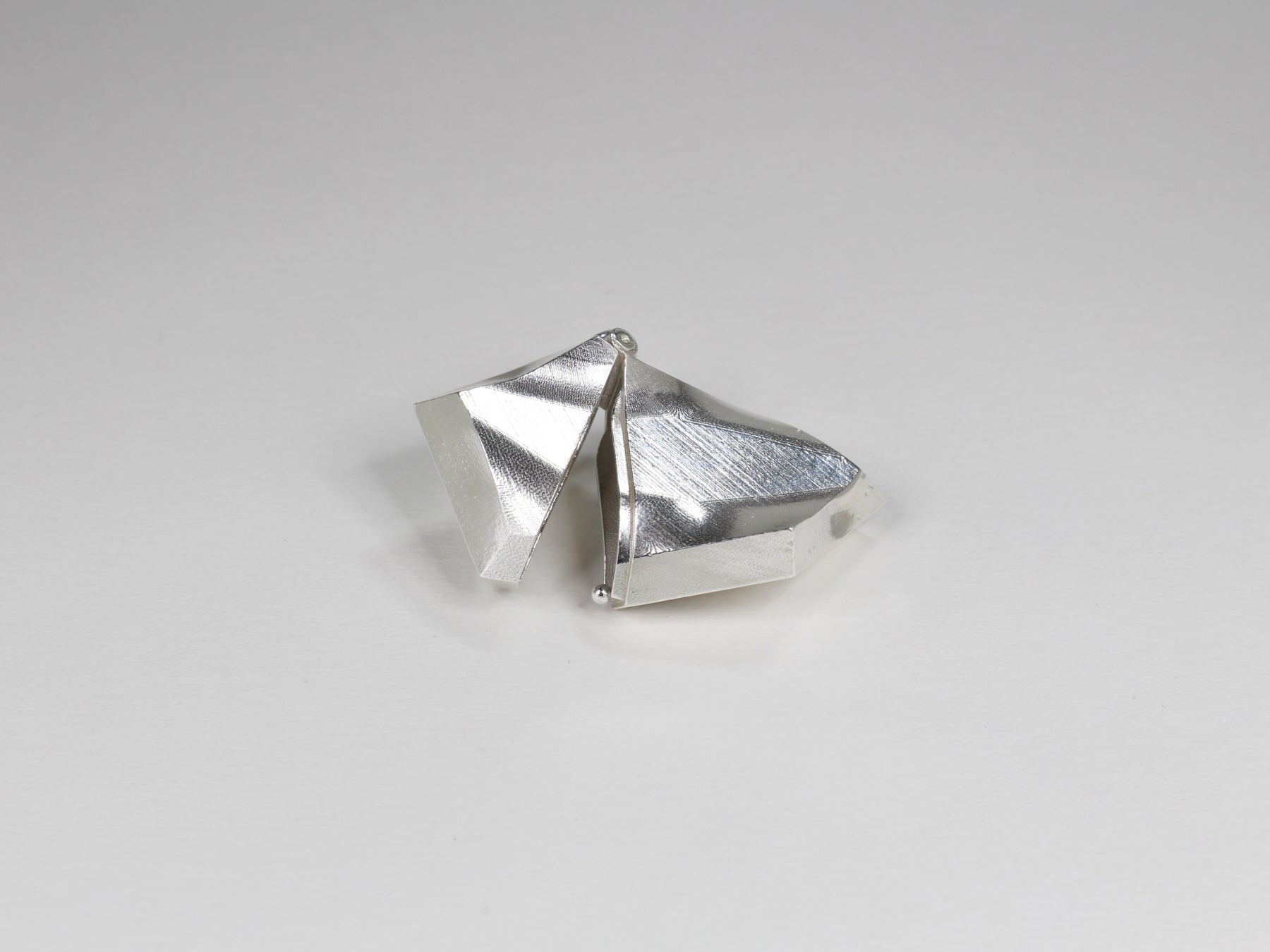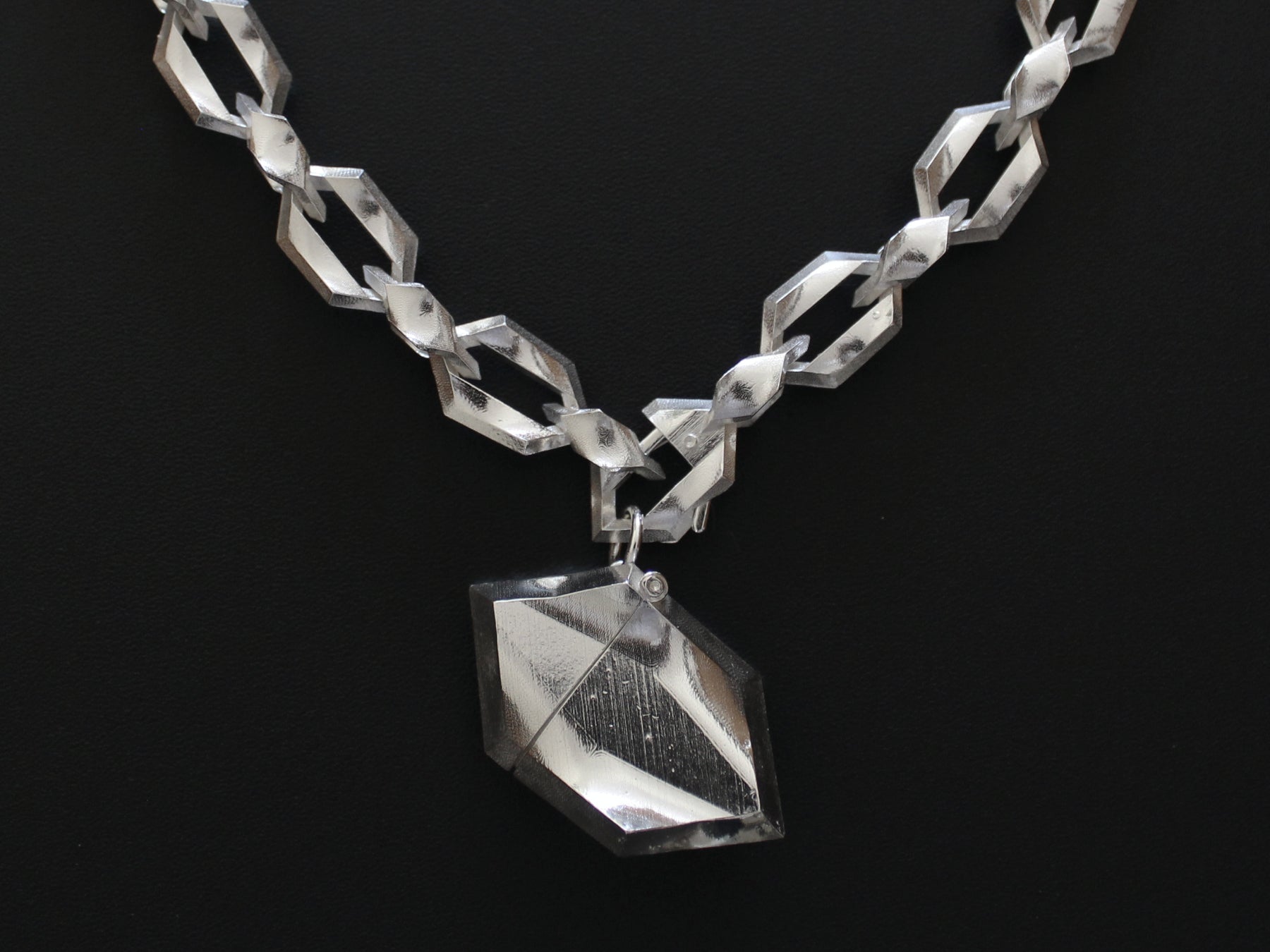 Rigid geometry undulates under torsion in this study of structure and distortion. A departure from the traditional curb chain with special attention paid to the retention of marks from the manufacturing process.