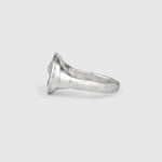 Frozen rippling fluid spills over a textured band. A deliciously pleasing combination of textures makes for a truly luxurious and eye catching piece.